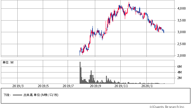 2700円まで下落していくか。